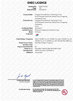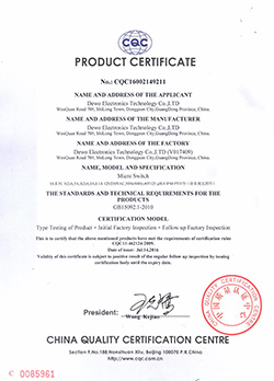 德傲微動開關CQC CB CE證書正式下發(fā)